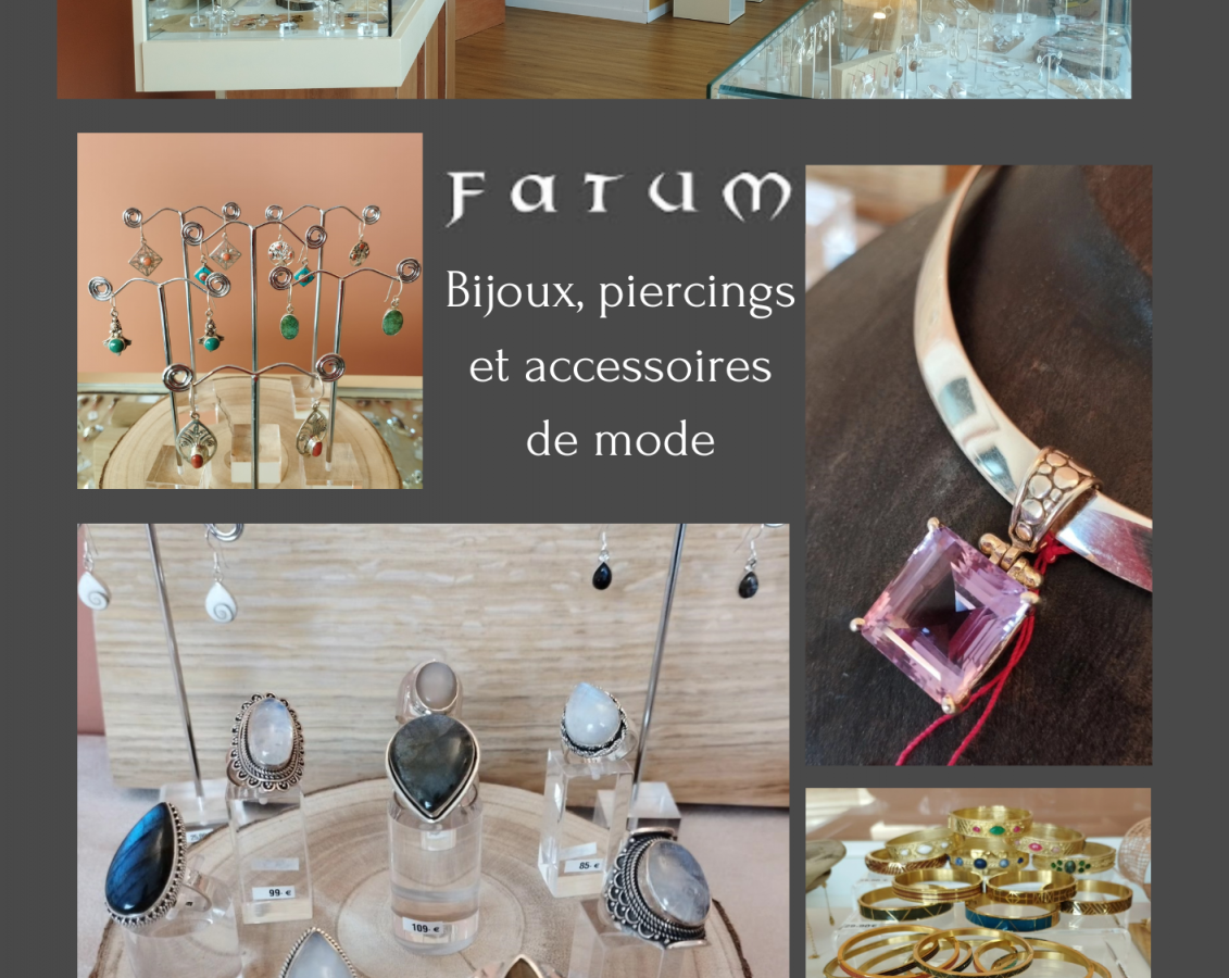 Fatum est une boutique de bijoux et accessoires de mode. Vous y trouverez des bijoux en argent, en acier inoxydable, des bijoux fantaisie (perles, coco, bois,...) et des piercings en acier chirurgical.