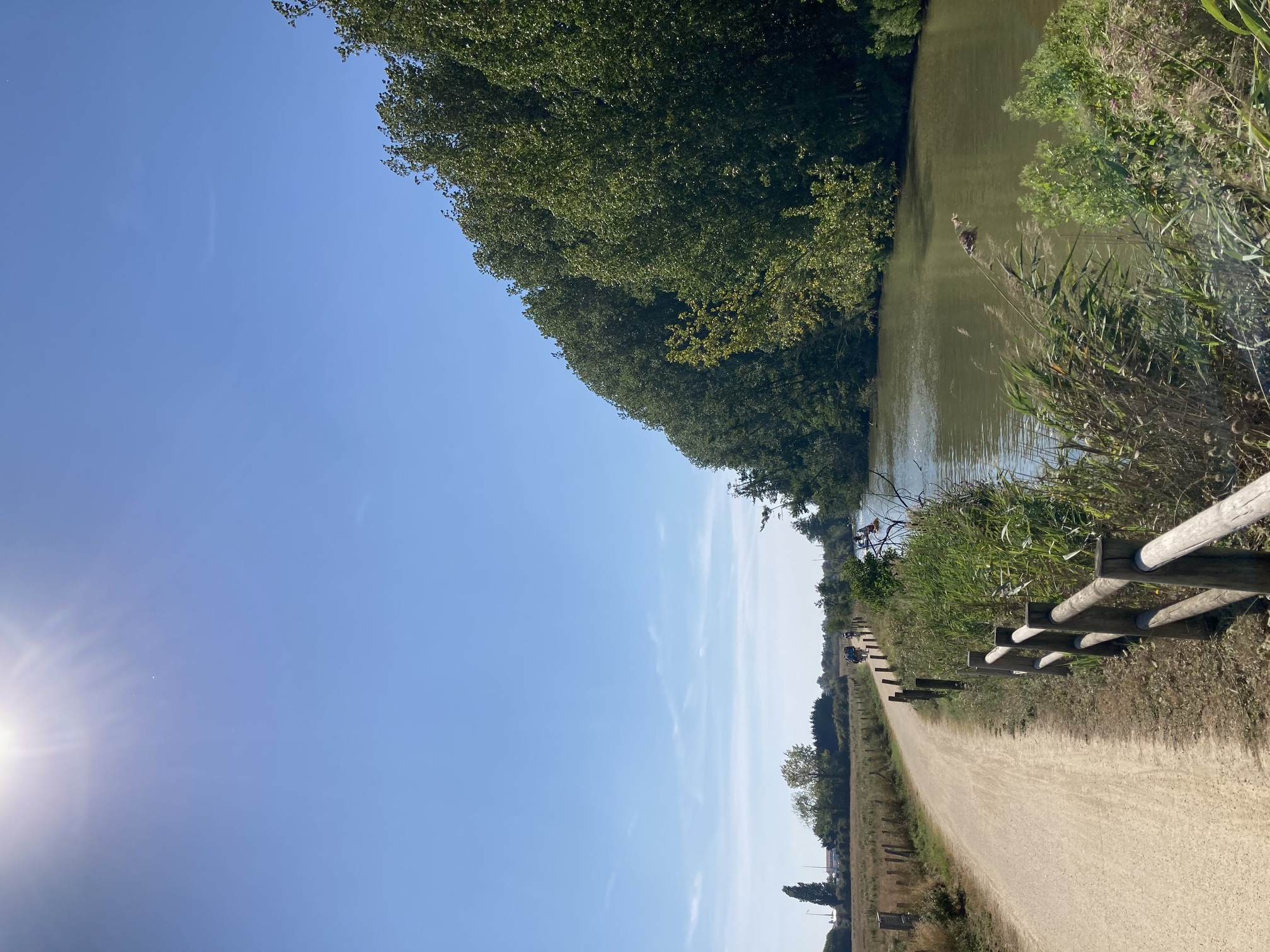 Vous regagnerez l'église par une agréable piste cyclable qui serpente les différents cours d'eau et bassins du Jaunay. De beaux panoramas seront à admirer à votre droite !
